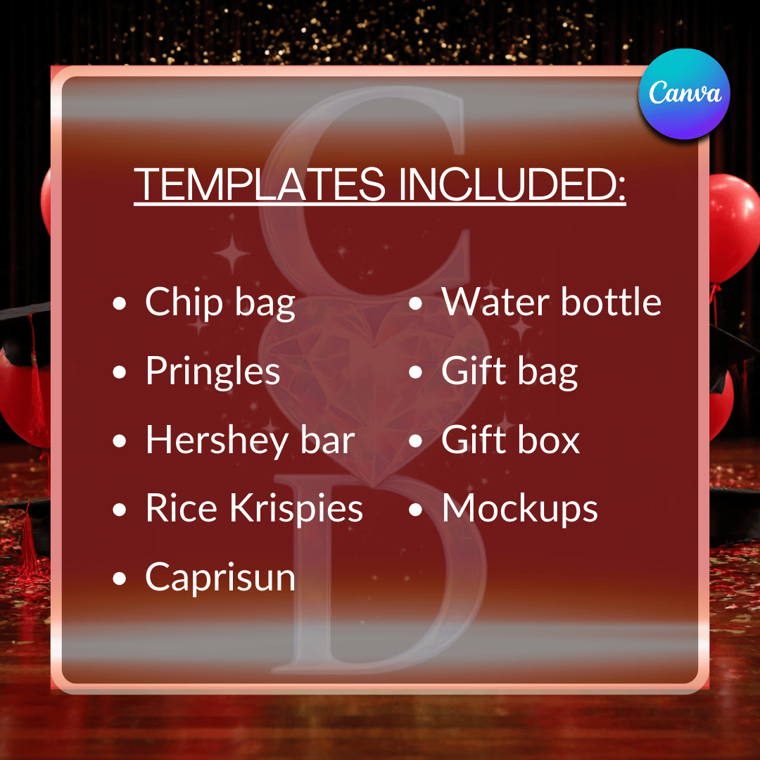 Luxe Red Grad Party Favor Canva Templates l Class of 2026