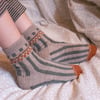 You’ll need fingering weight sock yarn, about 40(44)50gr of MC ; 22(25)30gr of CC1 and 7(8)9gr of CC2.