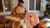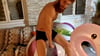 In this video Adam blow one intex 24" beach balloon. After that hedestroy a lot of inflatable toys.