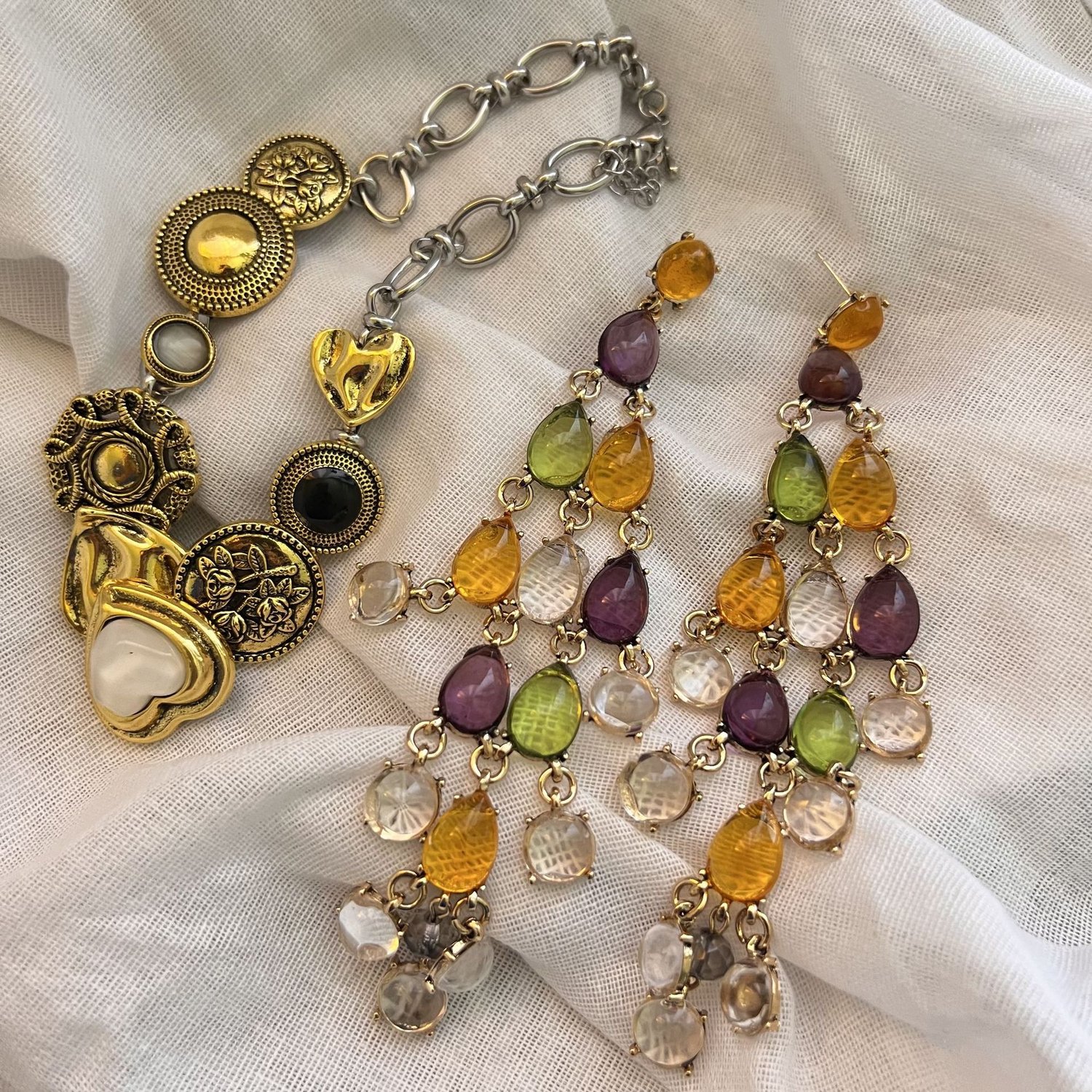 Vintage style colorful transparent resin waterfall drop earrings retro punk stacking choker