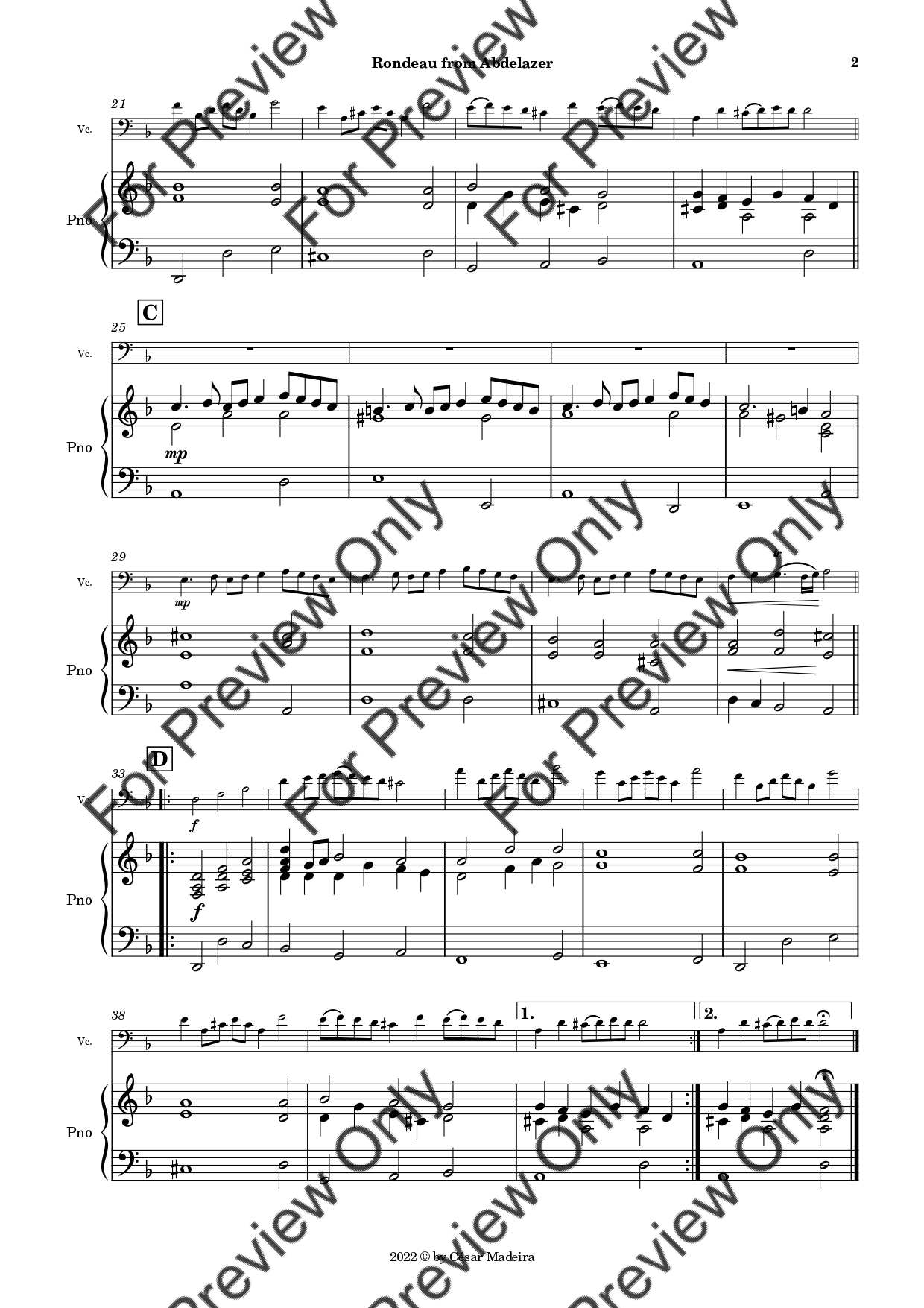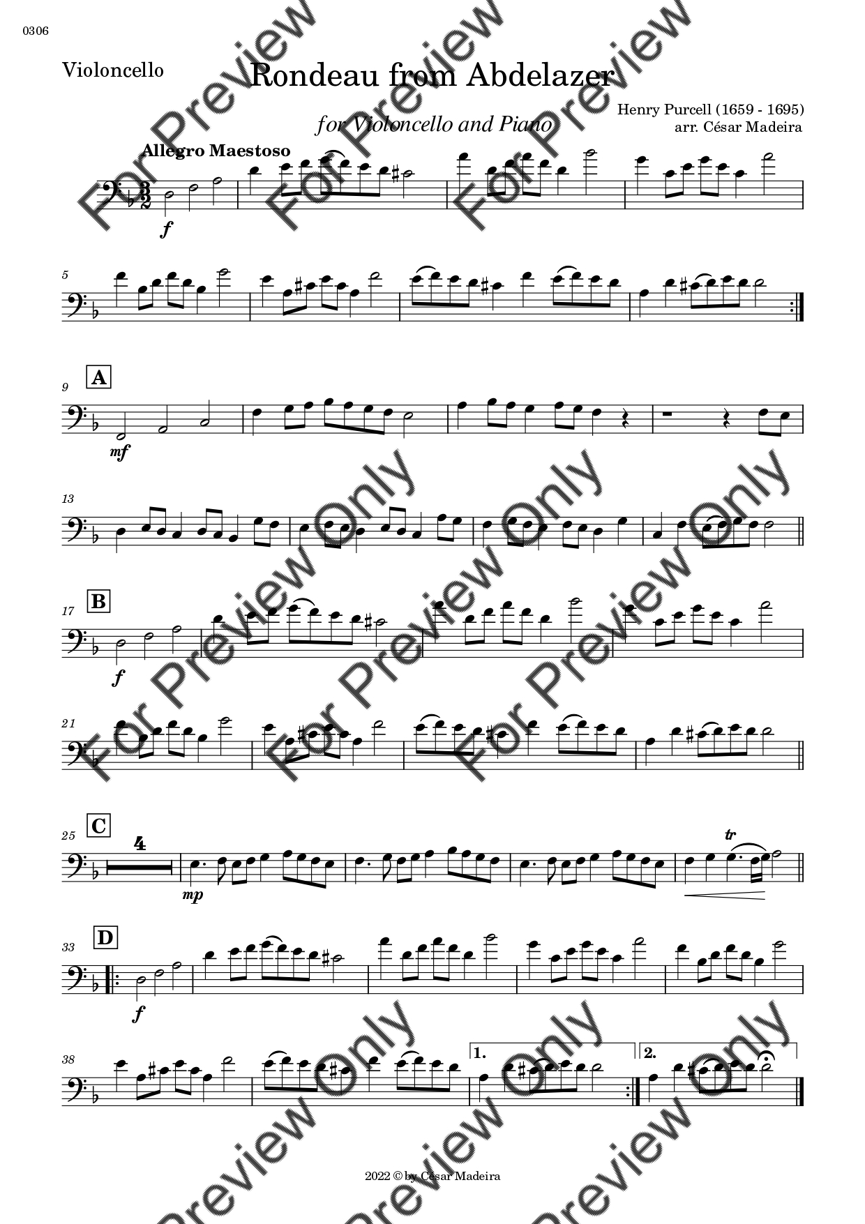 Rondeau from Abdelazer by Georg Friedrich Handel. Arrangement for Violoncello and Piano. With Full Score and Individual Parts. Have fun!