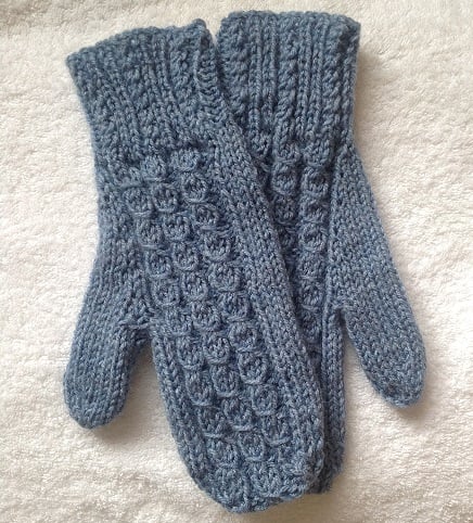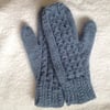 These lovely mittens have a great little twist rib in the cuff which is easy to do. The mock cable on the front is worked with no cable needle. The palm side is knitted in stocking stich. These are worked flat with a seam They have a lovely texture and look so elegant.