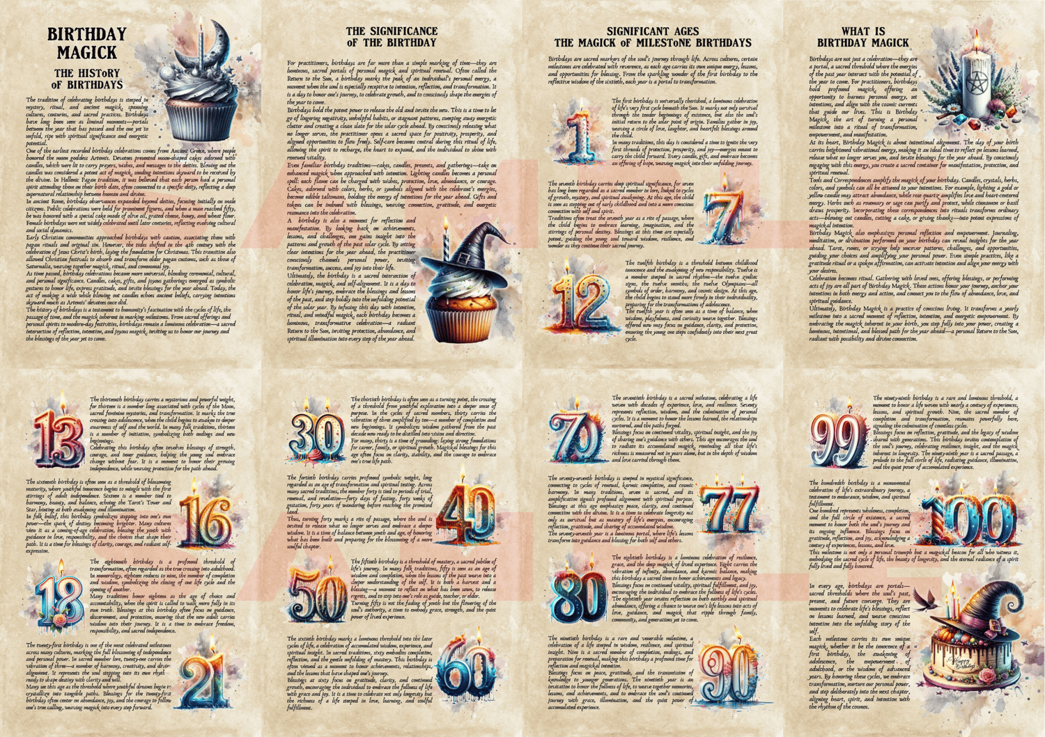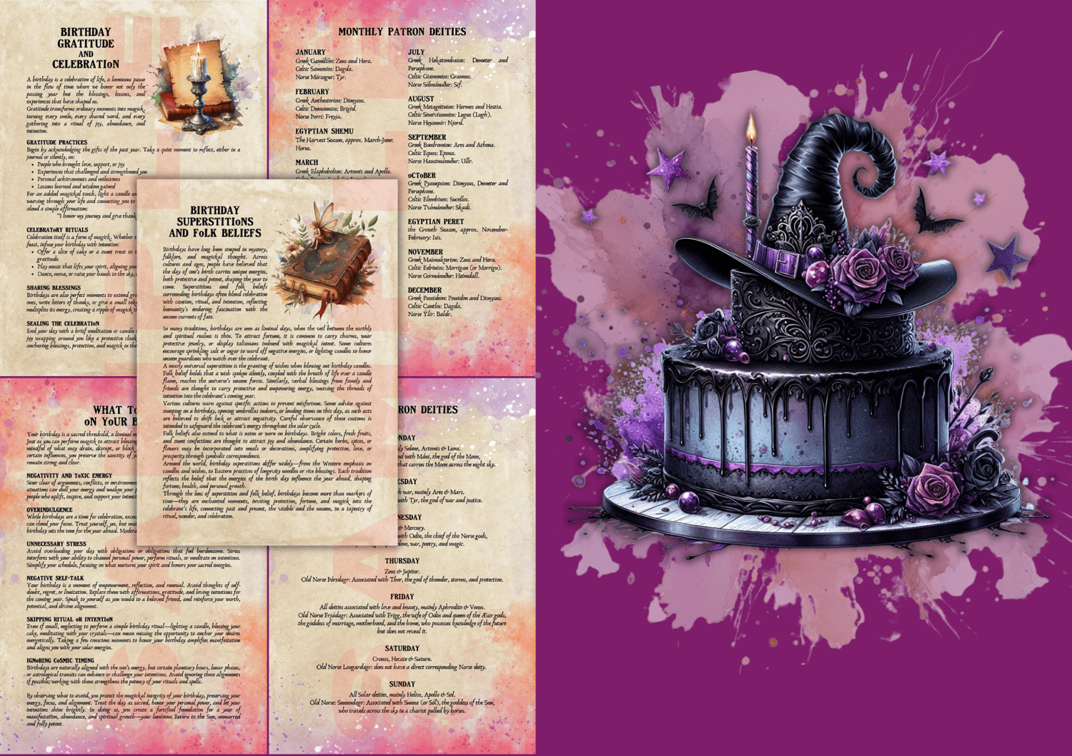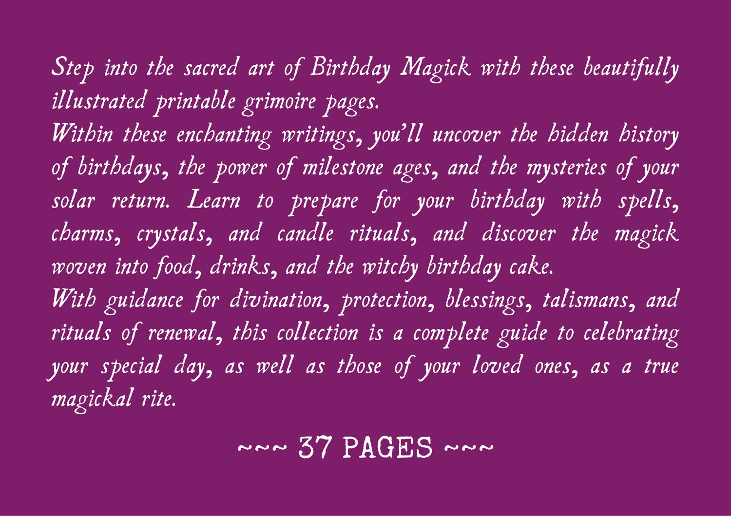 Step into the sacred art of Birthday Magick with these beautifully illustrated printable grimoire pages.
