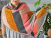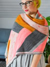 Travel Mode is a graphic rectangular shawl with a seamless modular construction that creates a herringbone pattern mirrored along a center panel. The shawl is knit in Garter stitch with Stockinette details and an i-cord finish. While designed for 1 main and 4 contrasting colors, the shawl can be knit with as many or as few colors as you wish, making it an excellent pattern for partial skeins, leftovers, or mini skeins as well.