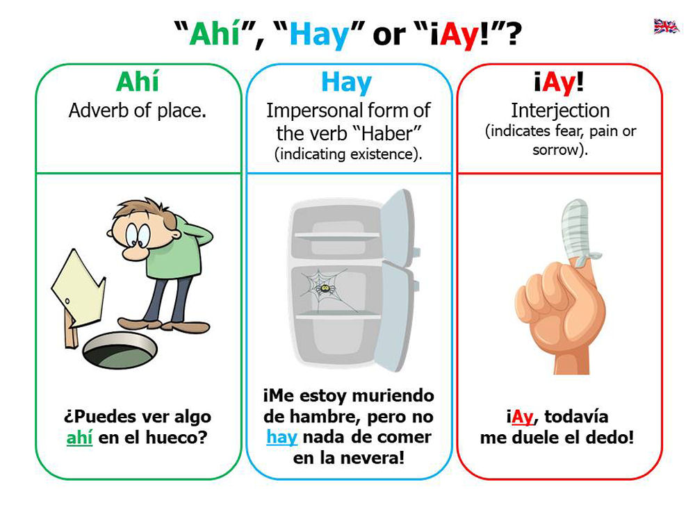 "Ahí", "Hay" or "¡Ay!" - English version