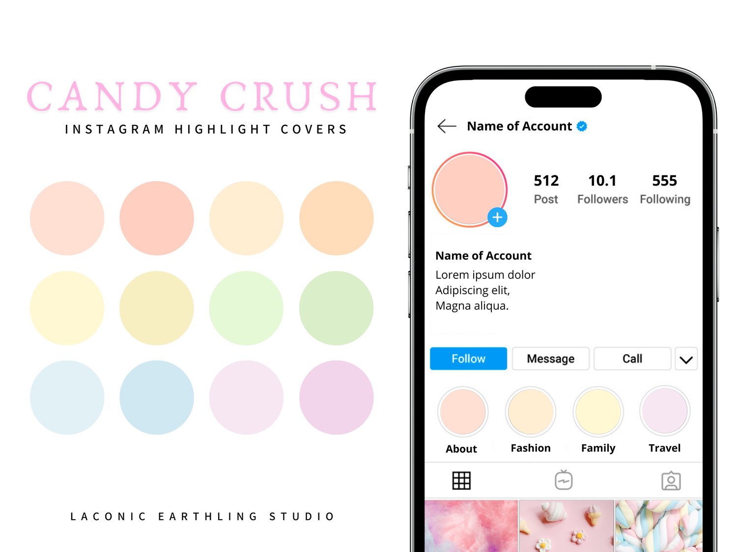 Social Media Instagram Candy Crush Highlight Covers | Neutral Story Instagram Highlights | Editable Canva Covers | Soft Pastel, Cake