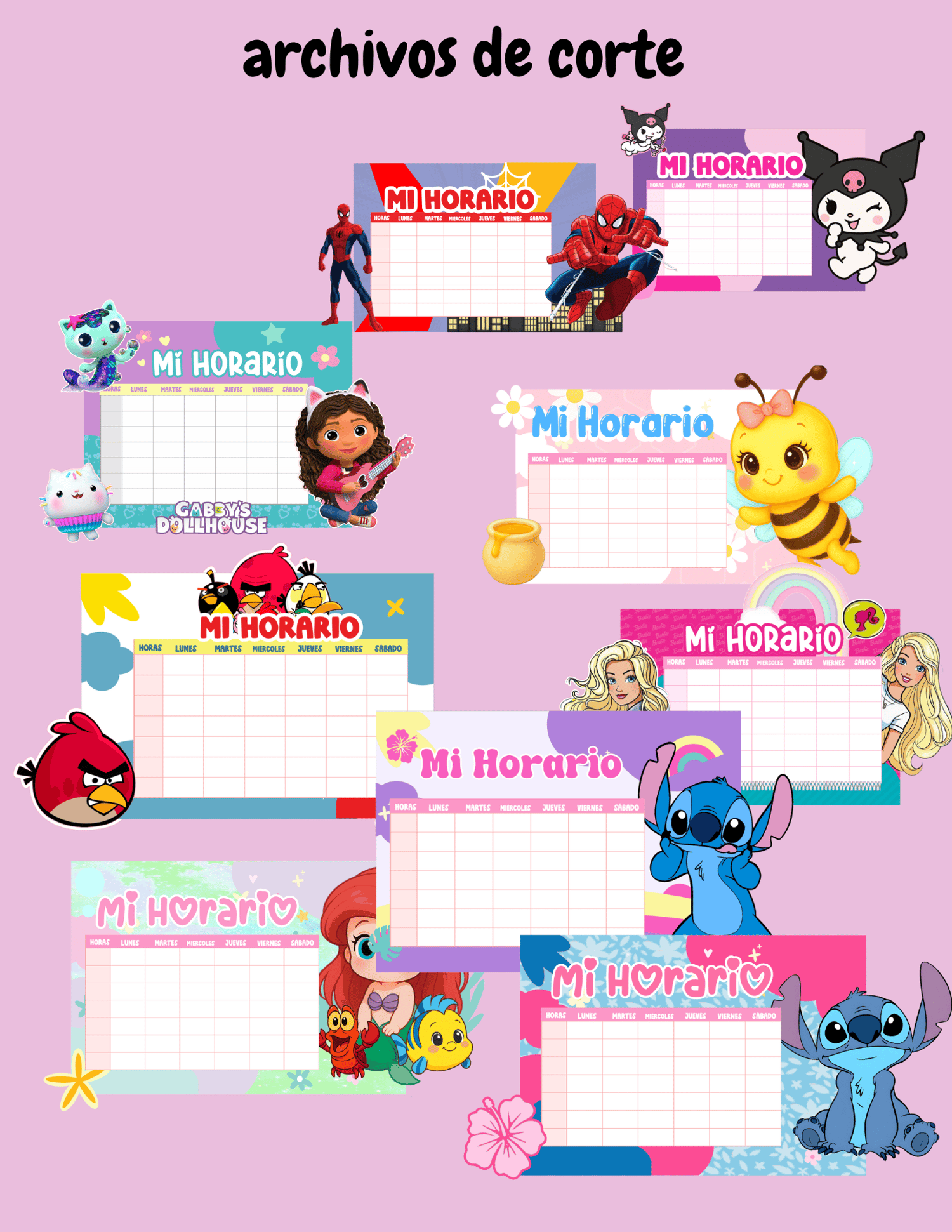 CONSTA DE 50 MODELO DIFERENTES DE HORARIOS PARA CORTAR A MANO Y TIJERAS O CON CAMEO Y CRICUT