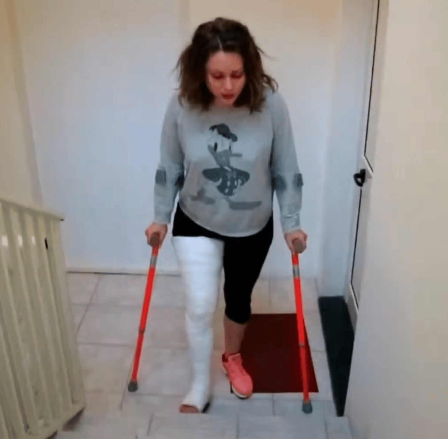 lange gehgips ung orange krücken