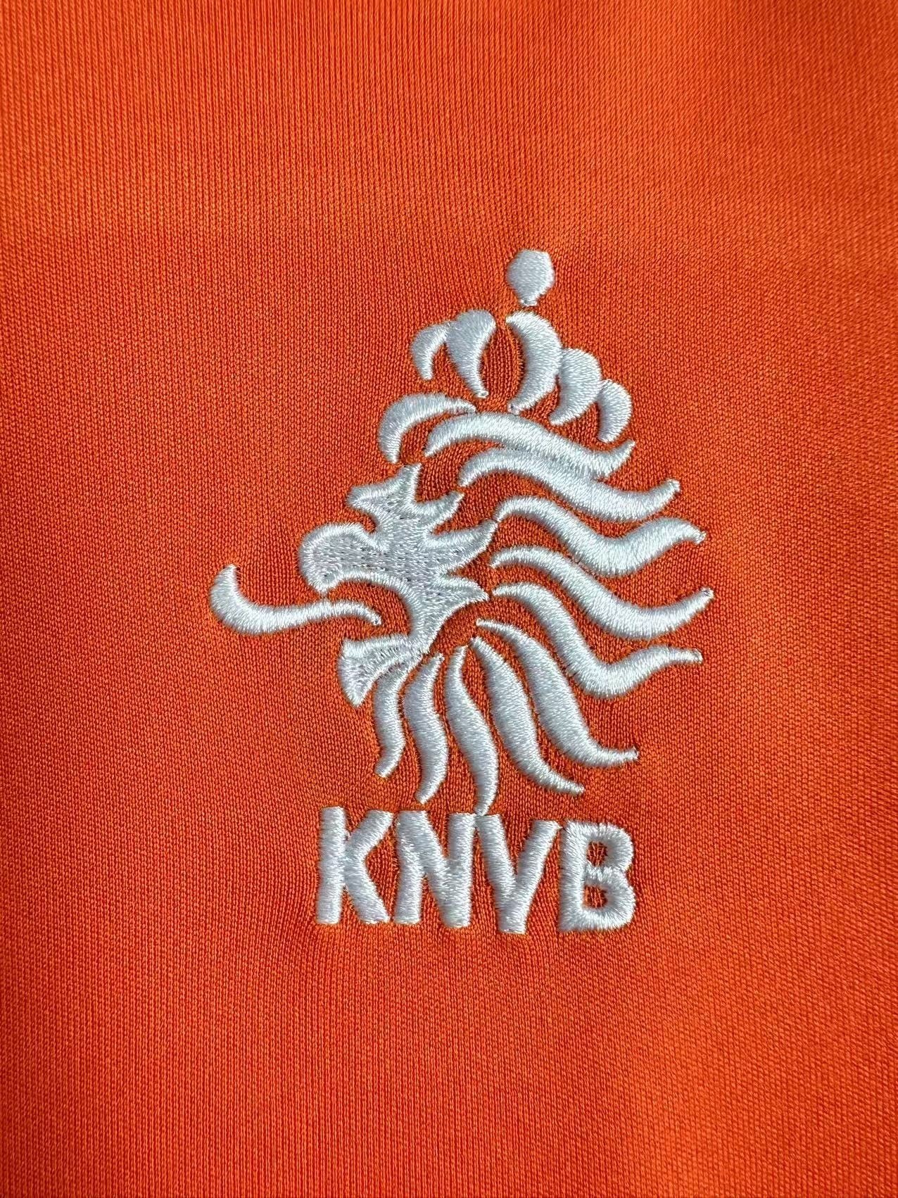 Crafted with Nike Dri-FIT technology, the lightweight fabric offered comfort and breathability, whether on the pitch in high-intensity matches or supporting from the stands. The shirt proudly displays the embroidered KNVB crest on the chest, balanced by the Nike Swoosh, delivering an authentic and timeless look.
