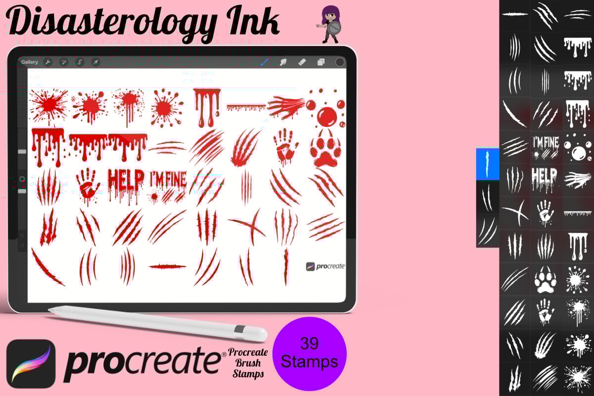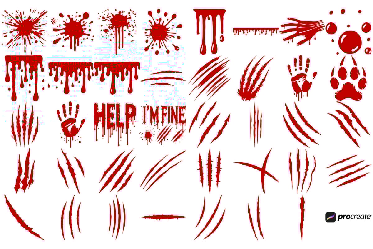 - 39 Blood Splatter & Scratch Mark stamps for Procreate