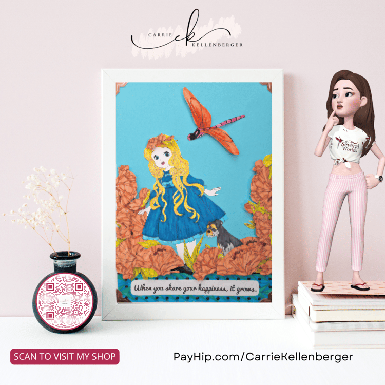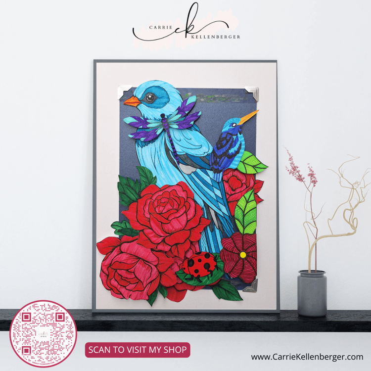 My paper cutting technique adds an extra 3D dimension of beauty and intricacy to each design, making my collages a delightful keepsake. They’re meant to brighten any space: an office cubby, a senior’s bedside, a child’s room, a sunny kitchen, or anywhere your heart desires.