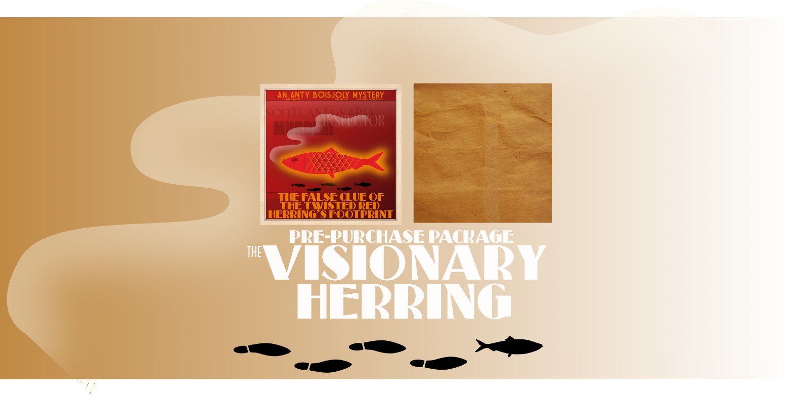 Included in the Visionary Herring backer package, along with the promise of The False Clue of the Twisted Red Herring’s Footprint, is a short-odds gamble on the next audiobook after that