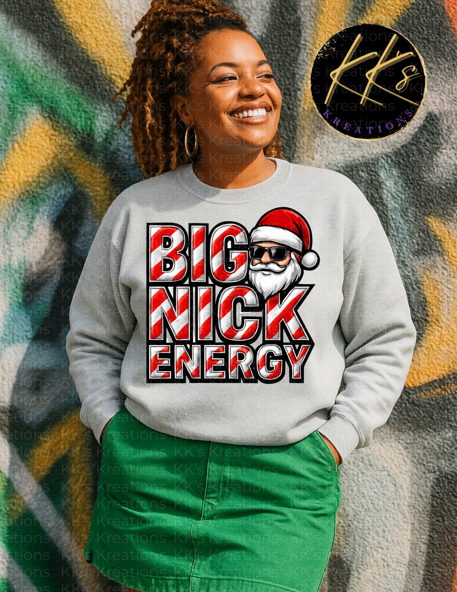 Turn up the holiday vibes with this bold and playful “Big Nick Energy” Christmas sweatshirt! Soft, cozy, and full of festive personality, this crewneck is the perfect mix of comfort and humor. The candy-cane lettering and cool Santa graphic pop beautifully against the ash gray sweatshirt, giving you a fun seasonal look that stands out at any holiday party.