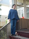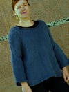 Over is a drop sleeve, oversized, bottom-up pullover, sized to fit bust sizes 30-32 (34-36, 38-40, 42-44, 46-48)“/76-81 (86-91, 96.5-101.5, 106.5-112, 117-122)cm with 12-14”(30-35.5cm) of ease at the bust. It measures 44 (48, 52, 56, 60)”/112 (122, 132, 142, 152)cm at the bust when blocked.