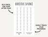 These savings challenge printables are reusable (if laminated) or can be printed year after year. They are a simple black and white design that you can color with any accent color you like to easily track your progress.