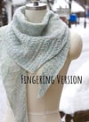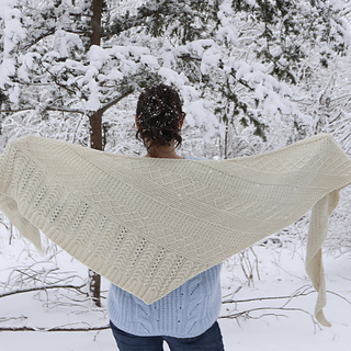 The Powder Wrap was designed in Julie Asselin Nurtured in Naturel. It took approximately 840 yards (so the 900 is to be safe since it varies from yarn to yarn.) If you wish to do it in fingering weight yarn, it will require approximately 620 yards (so way less than one cone!) Julie Asselin Nurtured may be acquired here. You will want to use between a US 4-US 6 for the fingering weight version, depending on the fabric that you like. (22 sts.4” is the goal.)