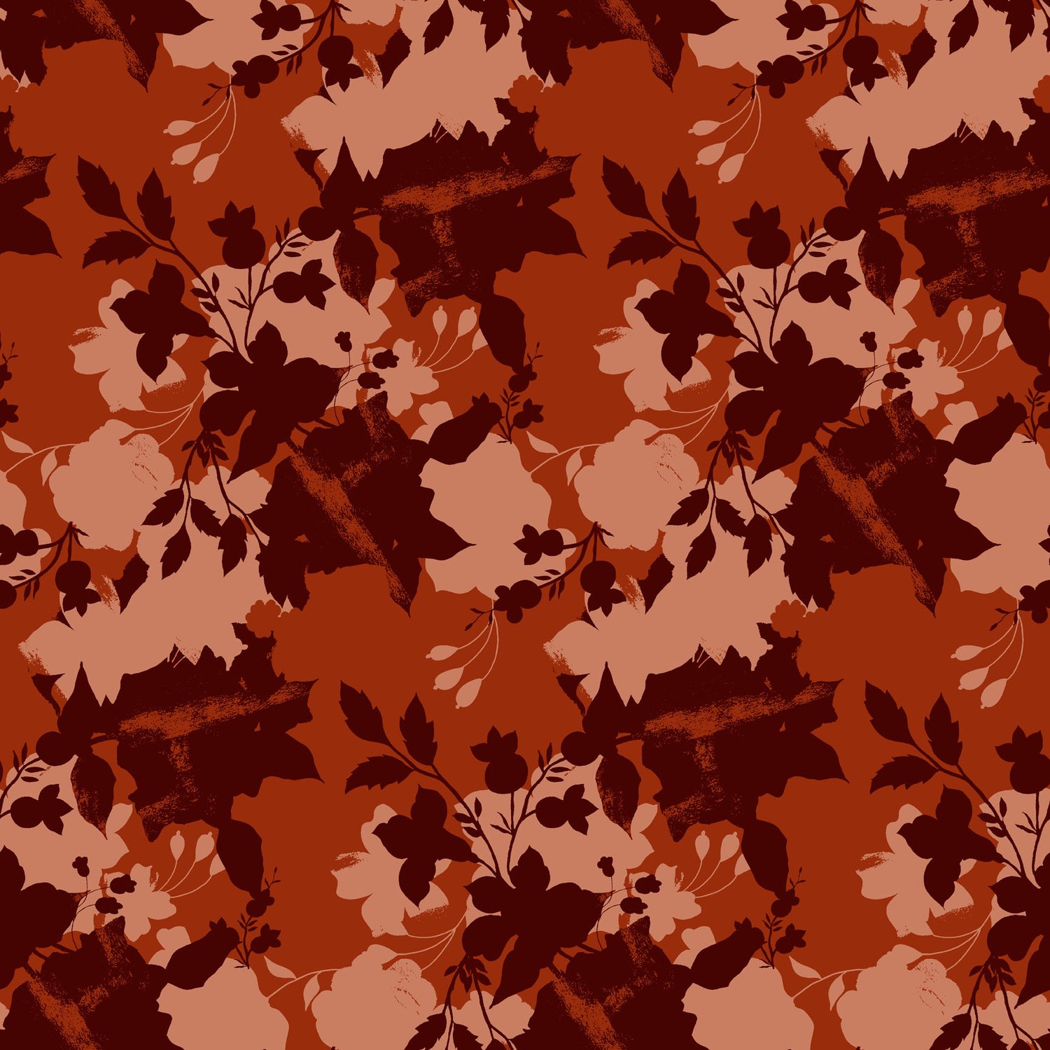 Elegant floral silhouettes with layered textures in warm autumn tones.