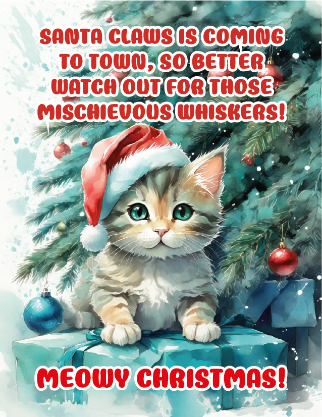 Buy your "FUNNY CAT MEOWY CHRISTMAS" Greeting Cards now and let the festivities begin!