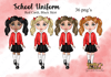 Instant digital download of our Cute School Girl in Red and Black Uniformand Pigtails PNG (36 PNG’s included one)