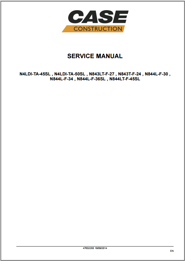2014 Case Construction ISM Tier 4 Engine Service Manual Part No 47632293