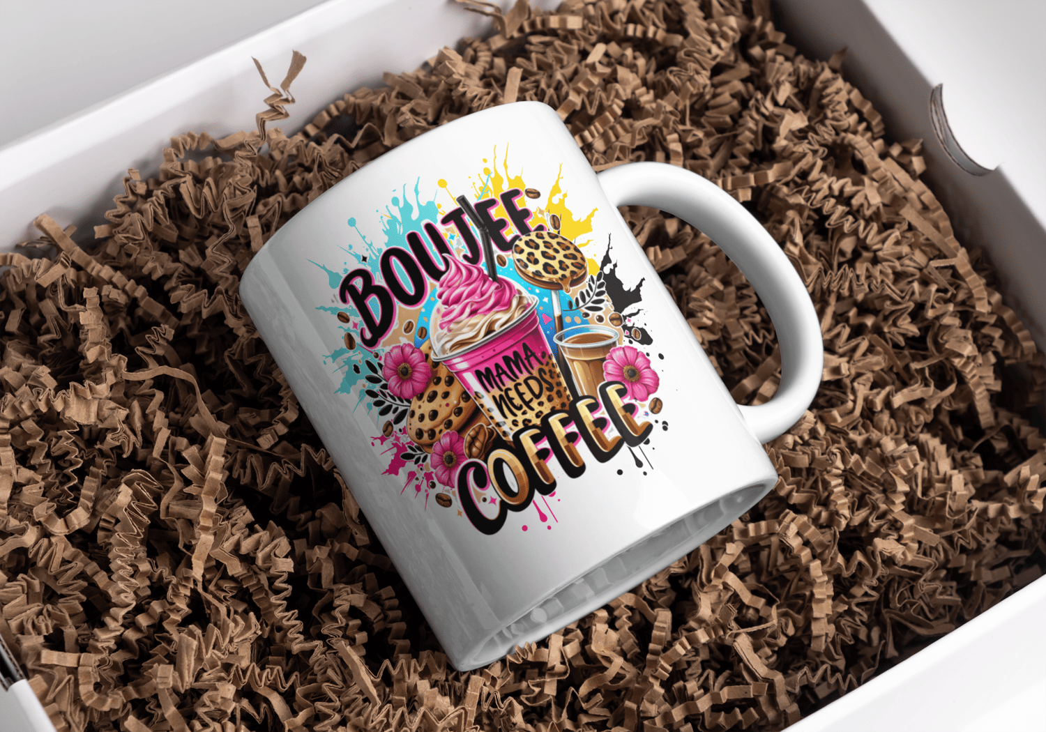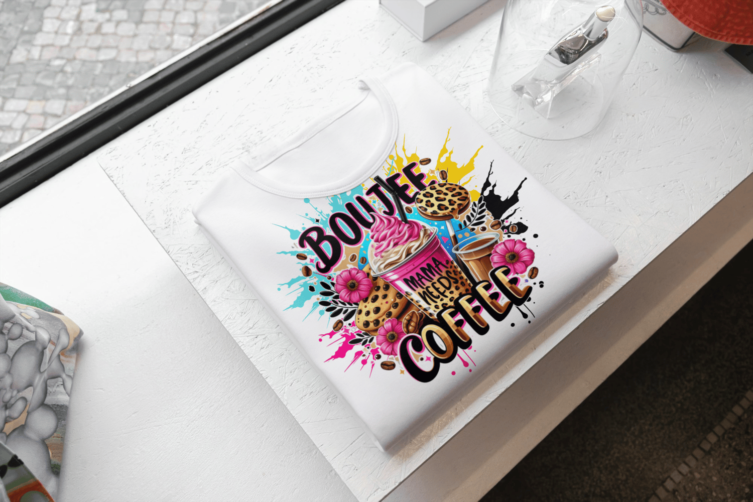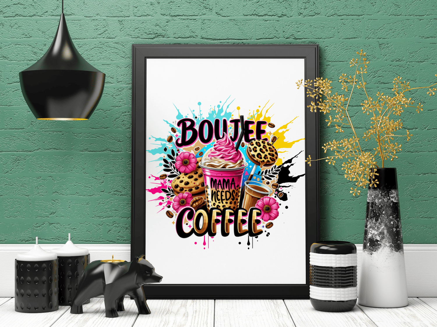 Boujee Mama Needs Coffee Sublimation png file transparent background .