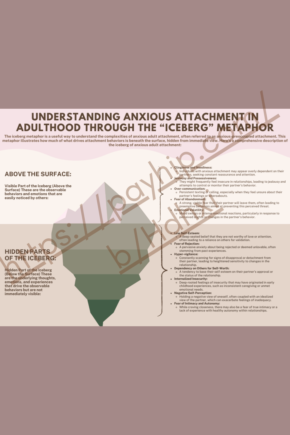 Anxious Attachment Iceberg Metaphor Worksheet: Adult Attachment Styles