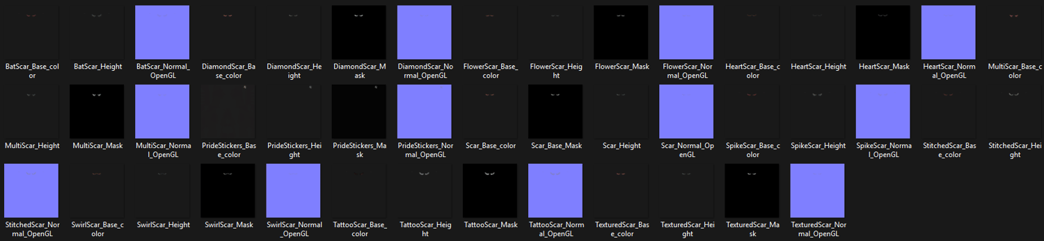 45 Textures (12 Base Textures, Height, Metallic, AO, Normal, Roughness, Masks)