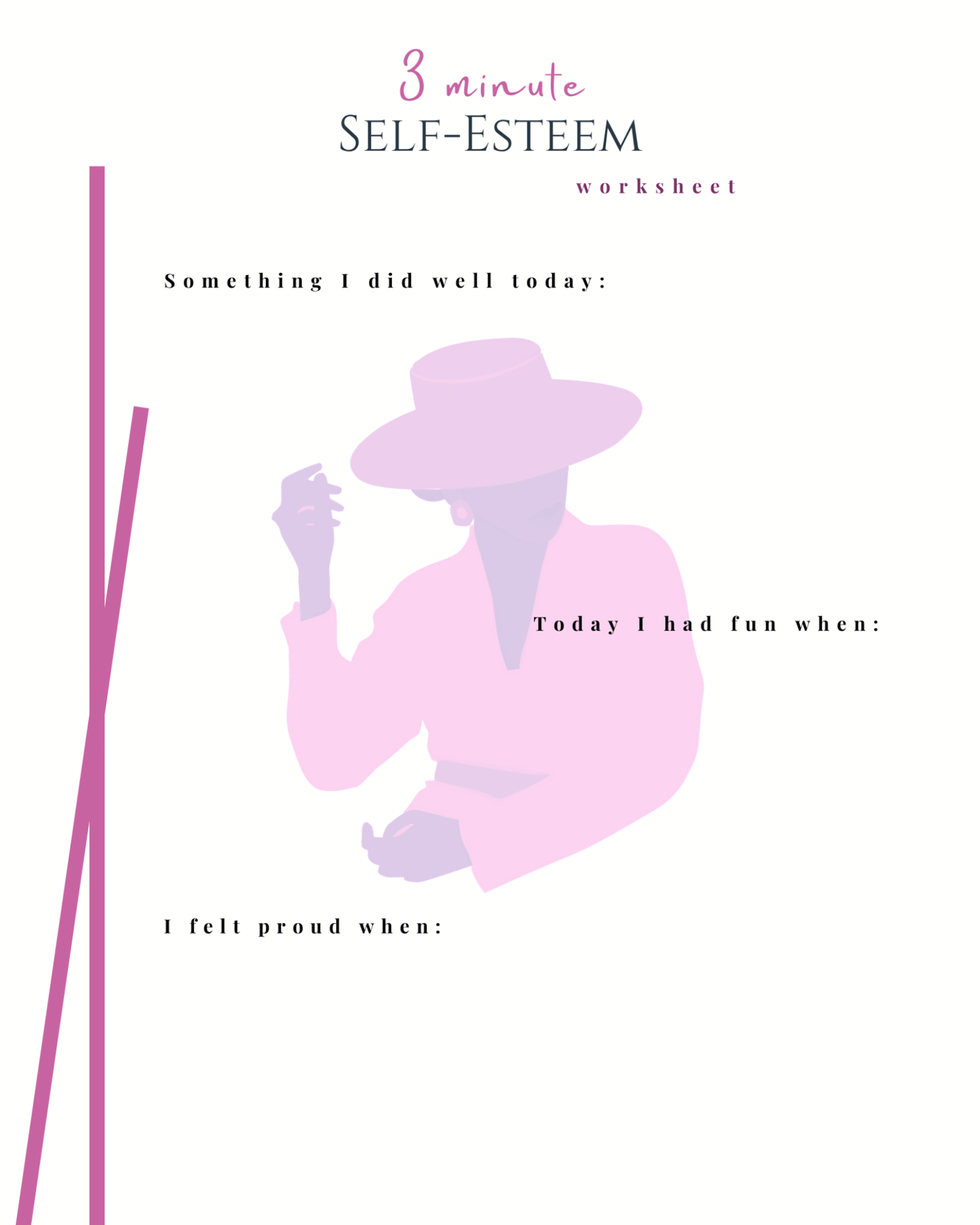 Self-esteem and self-care go hand in hand. Grab your 3 Minute Self-Esteem Worksheet, make a few copies and keep them available for when you need a burst of encouragement.