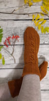 Pihlaja socks are worked from cuff to toe. The socks are designed for foot measure 24 cm. The instruction is written, but the lace section is charted.