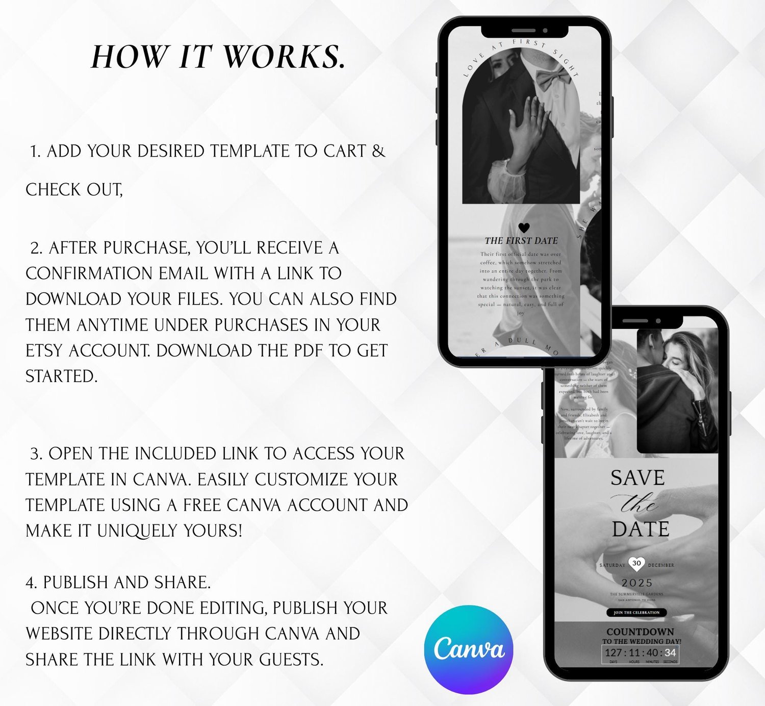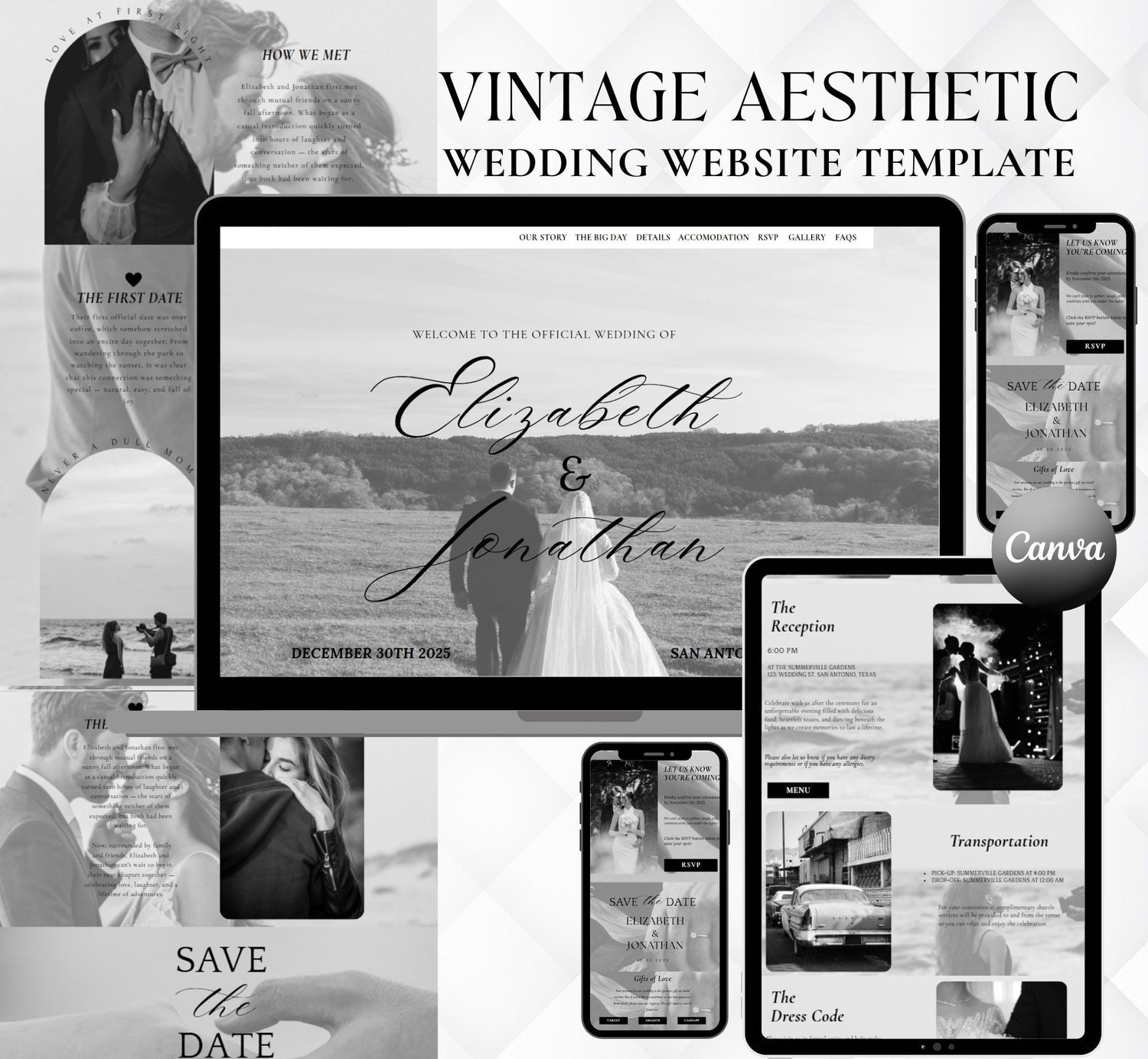 Vintage Wedding Website Template | Editable Canva Design | Digital Download for Wedding Invitations & Event Details