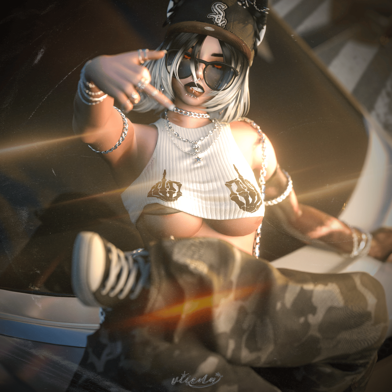 Most assets made by YURI some assets custom , some in shop! ( torn sweater, collared sweater, croptop, fitted shirt,tanktop,hoodie,dress, bikini,sweatpants,short boots,platfrom sneakers, heels, devil hat, cap hat, russian hat, earmuff, warmers, shades, glasses,piercings, earrings, necklace,cross,shocker, all piercings on body, nails, ears, horns)