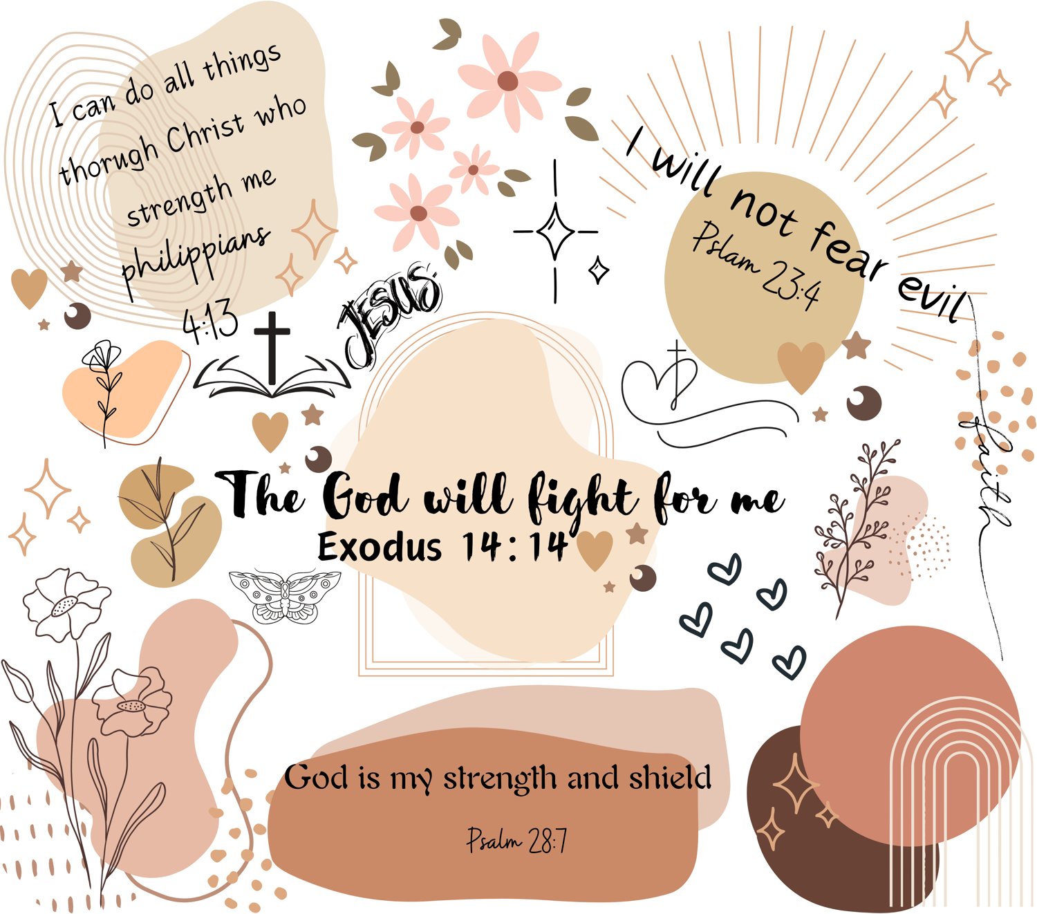 - Neutral floral + Christian scripture design