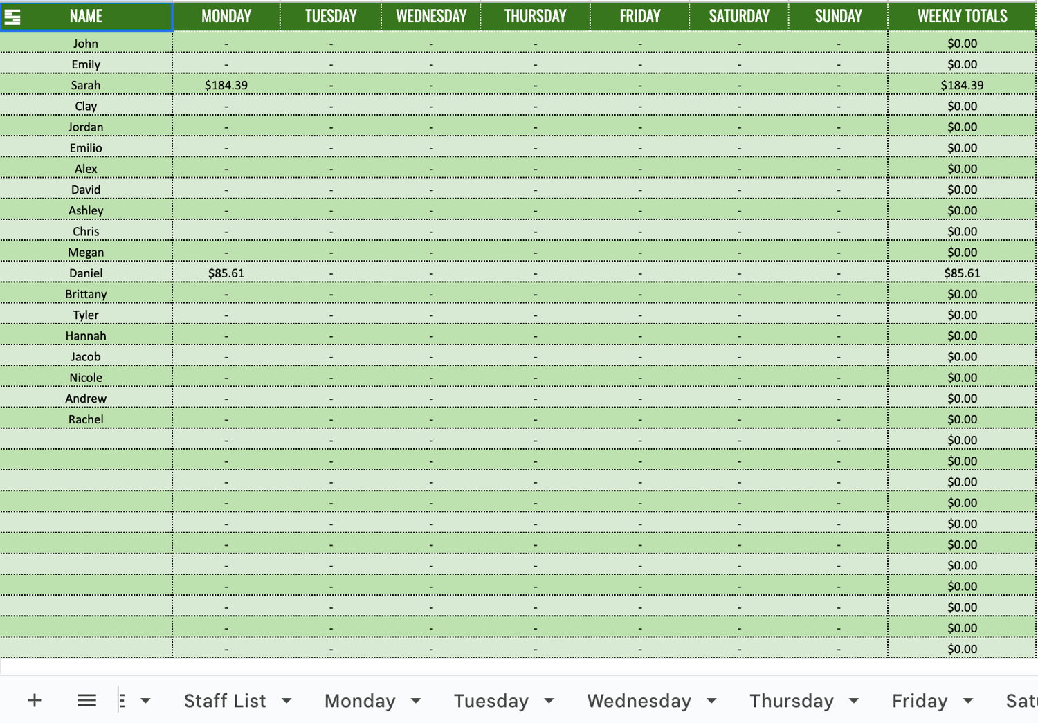 - Accurately distributes tip pools across multiple roles and shifts (AM, PM, BarAm, BarPM & Events)