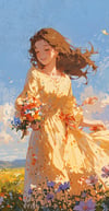 Step into a world of vibrant beauty with our latest design! This serene wallpaper captures the essence of joy and tranquillity, showcasing a woman gracefully walking through a colourful field of flowers, bathed in the warm glow of the sun. 🌸☀️