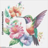 Hummingbird and flowers, PDF cross stitch pattern, English/ Español