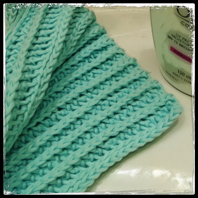 A simple washcloth with a ribbed texture. Crocheted in soft cotton the pattern can be used to create a face cloth, or use a stronger yarn for a sturdy dish cloth.