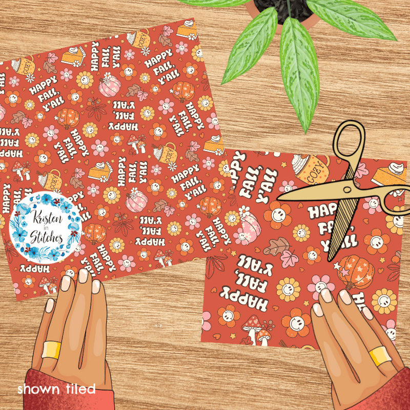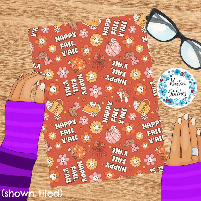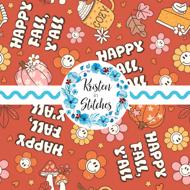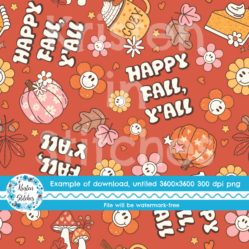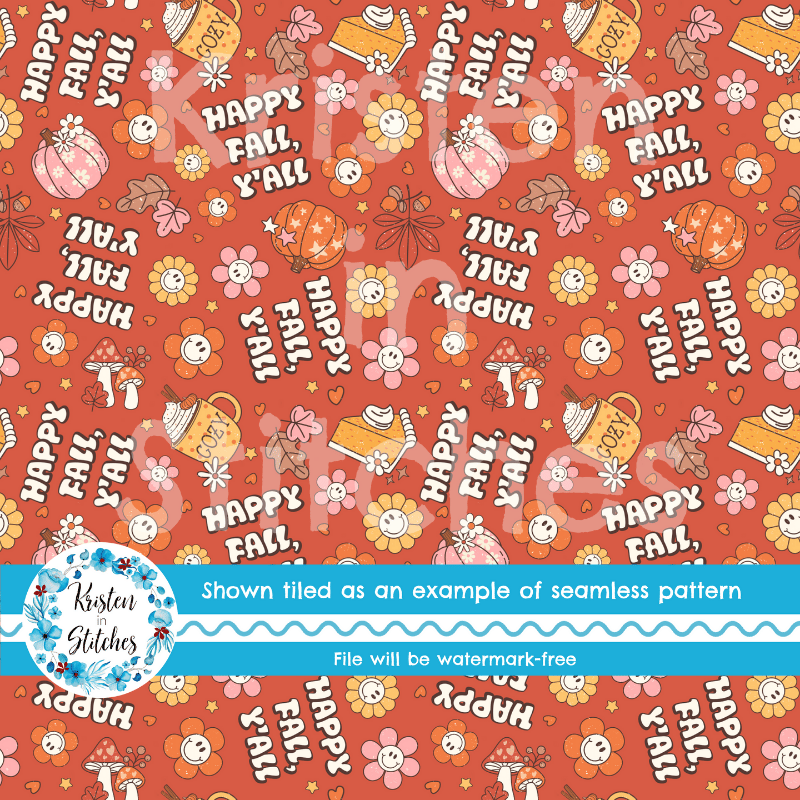 Happy Fall Y'all Retro Autumn Halloween Thanksgiving Seamless Pattern