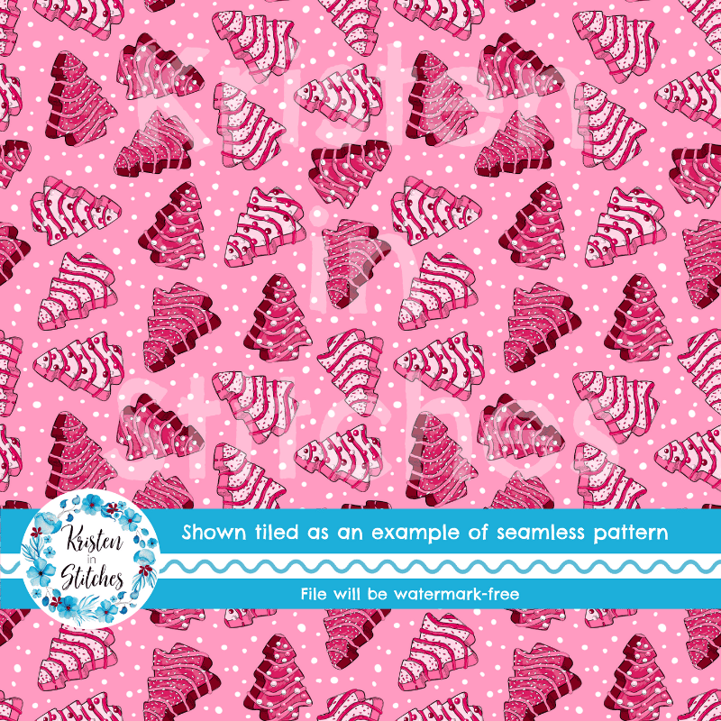 Pink Christmas Tree Snack Cakes Seamless Pattern