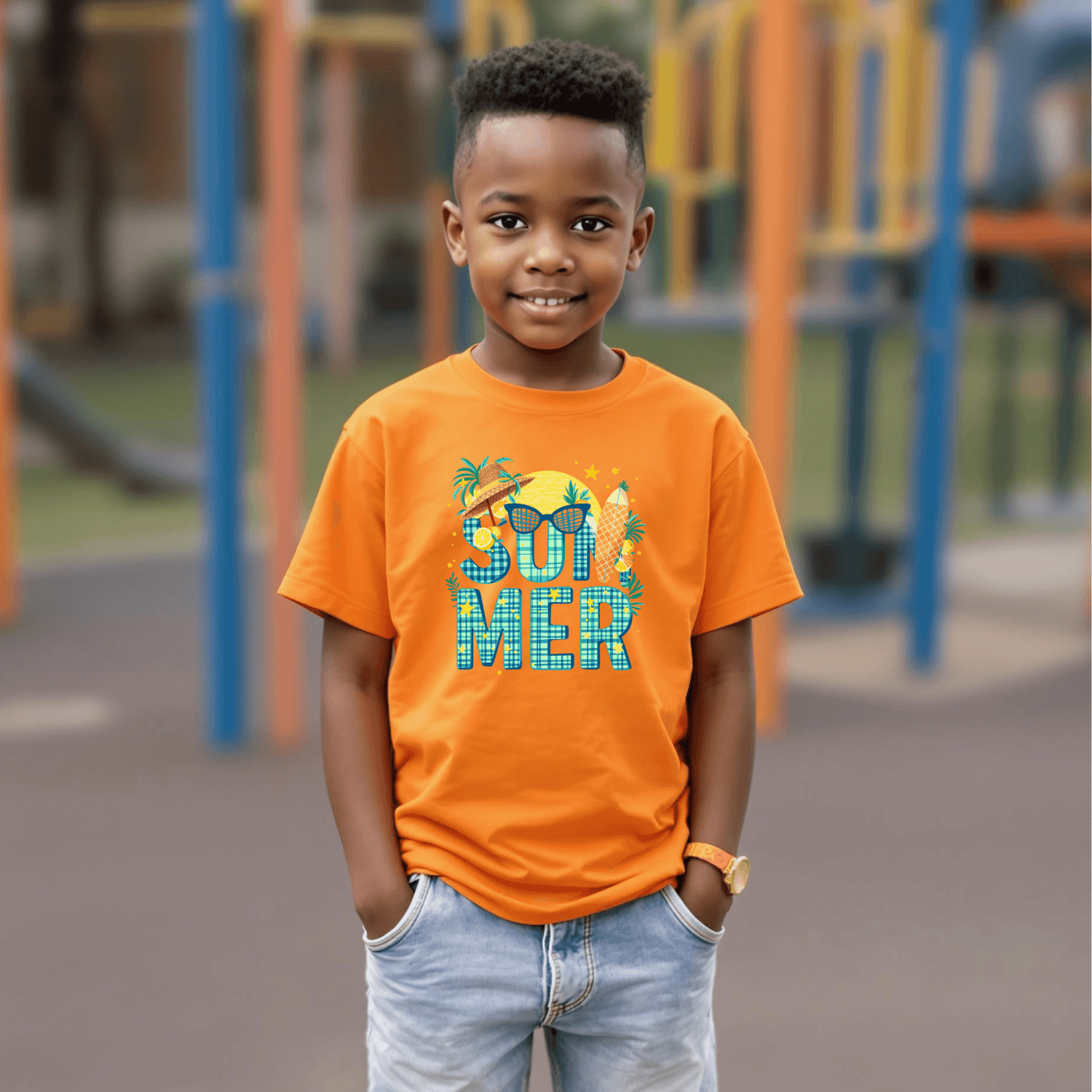 Boys Summertime 4-Piece Digital Design Bundle | Cool Sunglasses & Plaid Lettering PNG | Kids Summer Shirt Graphic
