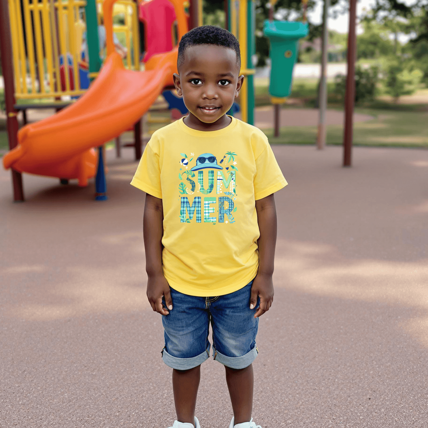 Bring on the summer vibes with this playful Boys Summer sublimation design! Featuring bold plaid “SUMMER” lettering, cool sunglasses with a cap, tropical leaves, lemons, stars, and beach-themed accents—this fun and colorful design is perfect for creating boys' t-shirts, swimwear, tote bags, and summer party decor.