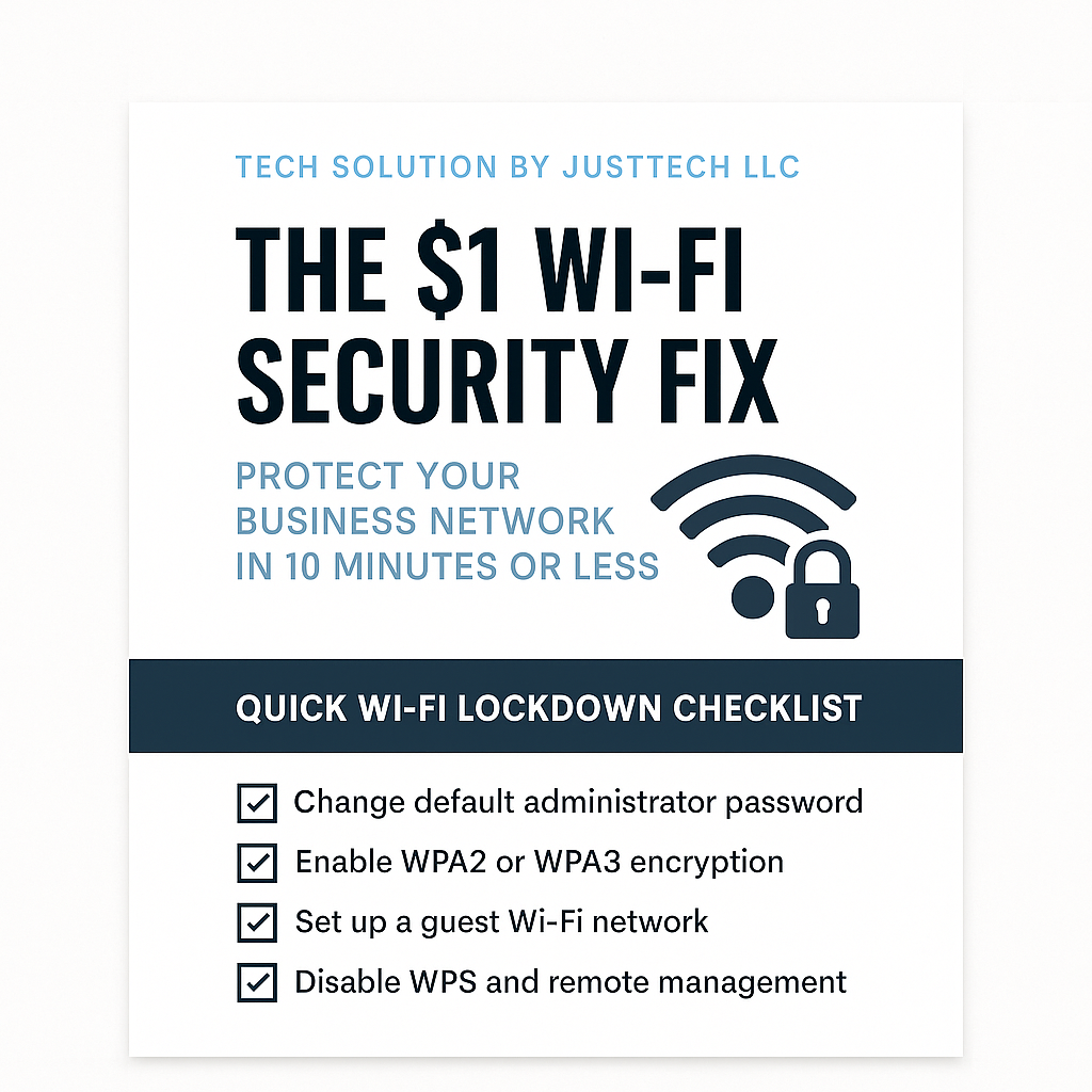 This ultra-simple DIY guide is made for small business owners who want quick wins without tech headaches. In just 10 minutes, you can lock down your Wi-Fi and prevent: