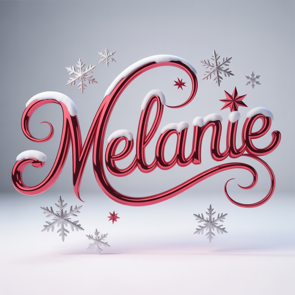 Add a touch of winter elegance to your digital space or home with this mesmerizing 3D "Melanie" name art. Featuring a high-gloss metallic rose-pink finish and delicate snow-capped lettering, this design perfectly captures the magic of the holiday season.