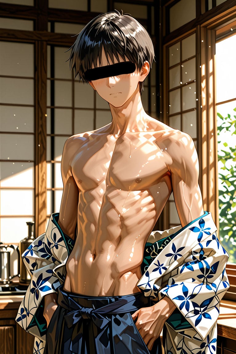 日本の正月をテーマに、着物を着用している男性を、キャラクターごとにお任せ作成しました。男らしいキャラクターの魅力を思い切って表現しました。