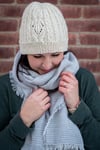 Inspired by classic fisherman's sweaters, Fir & Flannel is an all over cabled beanie knit with DK weight yarn. Named for two of my cozy winter faves - Frasier Fir scented anything and soft flannel button downs, this hat is ready to hop on your needles.