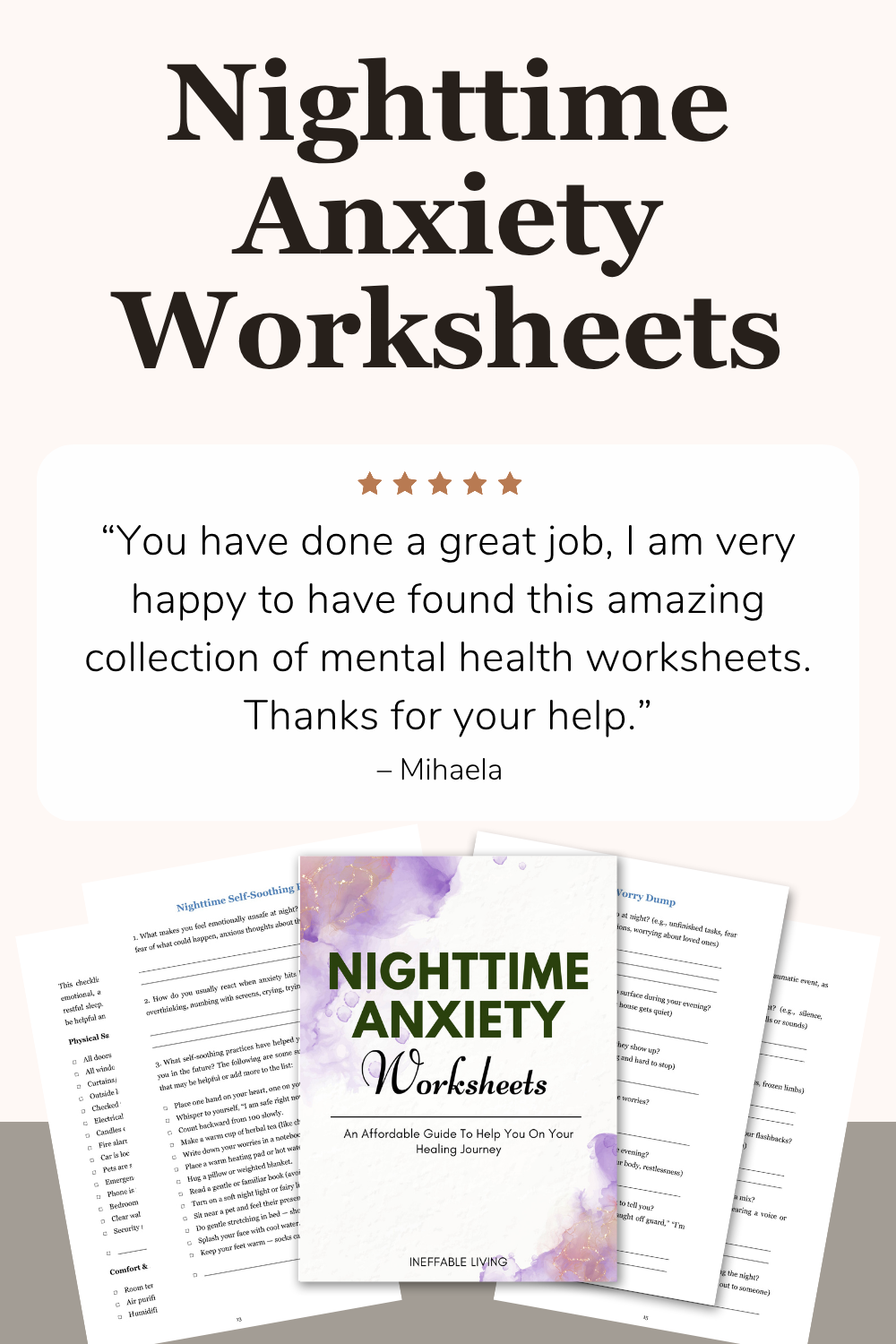If so, Nighttime Anxiety Worksheets can help you create a calming nighttime routine, soothe racing thoughts, and create emotional safety at the end of the day.