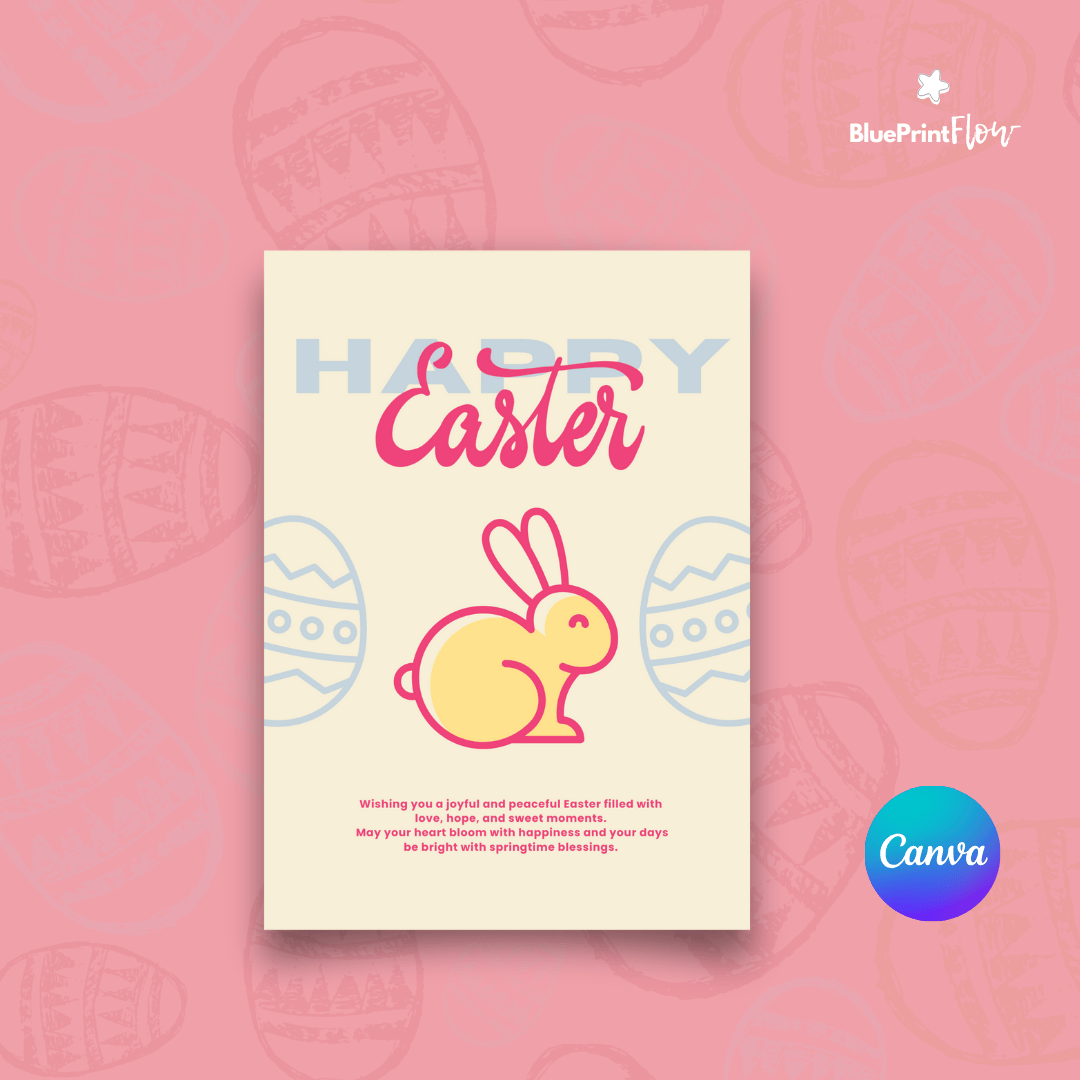 This editable Easter invitation card is perfect to share warm wishes with family and friends during April celebrations. With a soft and cheerful design featuring a bunny and Easter eggs, this card captures the spirit of rebirth, renewal, and togetherness.