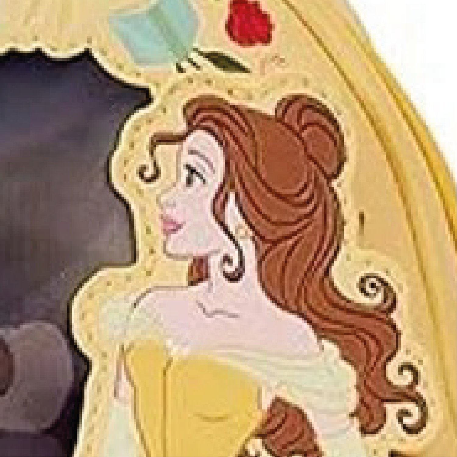 - Illustration de Belle en grand format, robe jaune somptueuse