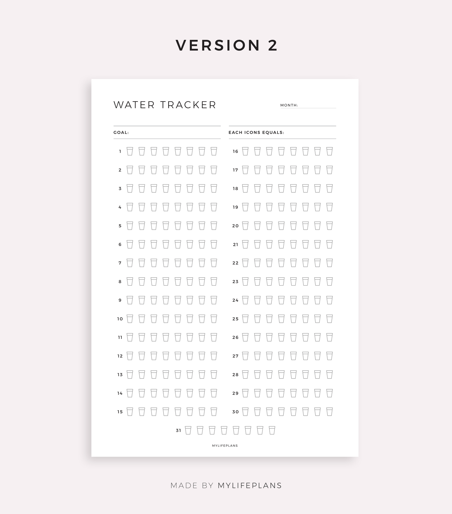 Monthly Water Tracker Template for Remarkable, Supernote, Kindle Scribe, Boox, Kobo