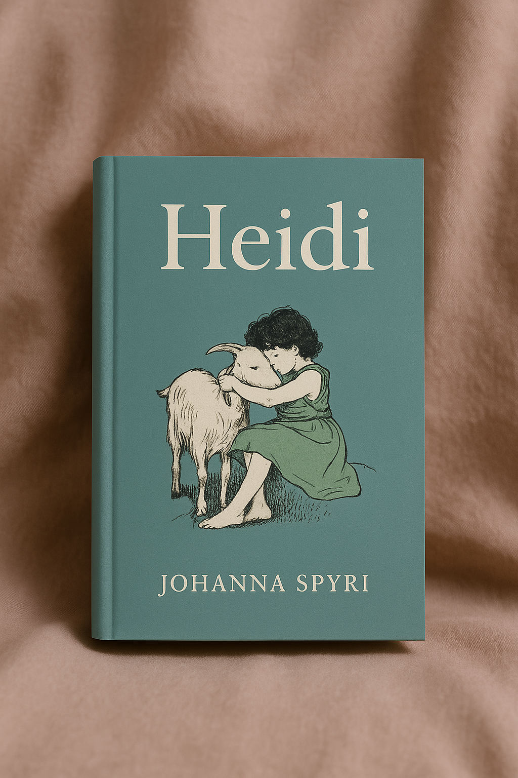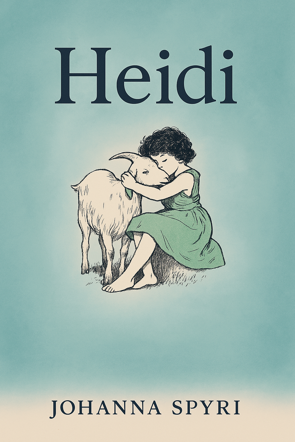 This high-resolution artwork features a delicate illustration of Heidi and her goat, gently reimagined in soft teal tones and clean typography — a serene tribute to Johanna Spyri’s beloved classic. Ideal for authors, collectors, or digital sellers seeking a one-of-a-kind visual identity.