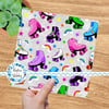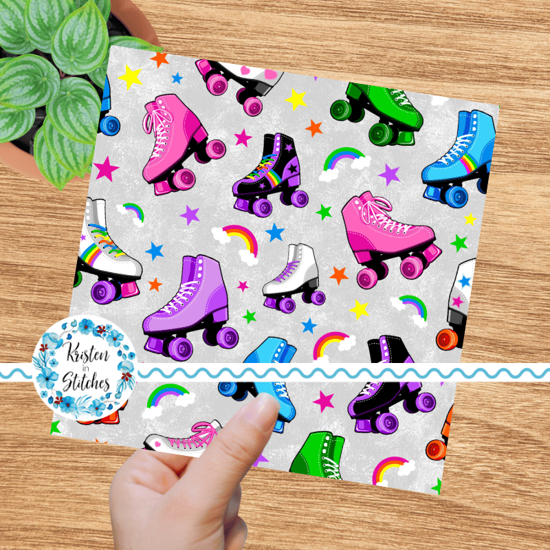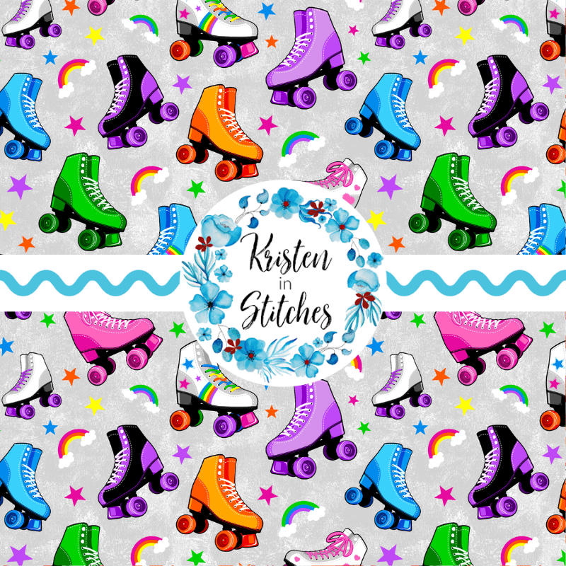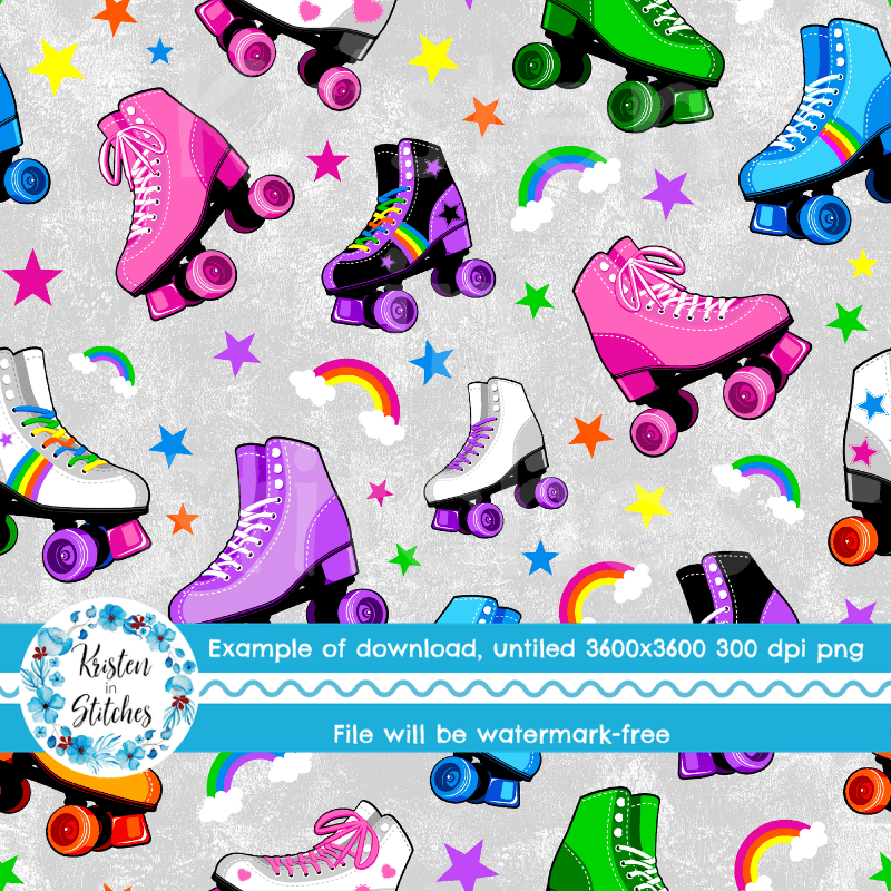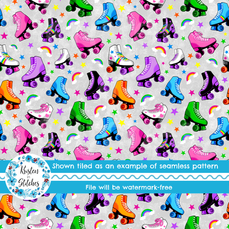 Retro Rollerskates Seamless Pattern, Colorful Rainbow Skates